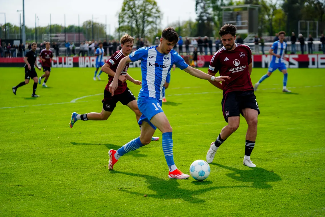 Zum Abschluss der englischen Woche wartet auf den FV Illertissen in der Regionalliga Bayern am Samstag(14.00) am Valznerweiher in Nürnberg mit der U23 des Zweitligisten der aktuelle Tabellenzweite. Erneut eine schwere Aufgabe für den FVI, denn die Jungprofis des Club werden sicher mit stolzgeschwellter Brust antreten. Grund dafür sind die letzten beiden Siege der Cluberer, vor allem der Sieg am Dienstag(2:1) im Derby gegen die Zweitvertretung von Greuther Fürth. Im Spiel zuvor hatten sie den letzten Gegner der Illertisser, den TSV Aubstadt, mit 4:0 vom Platz gefegt. Nürnbergs Trainer Andreas Wolf, der bereits in seiner 7. Saison als Verantwortlicher die Regionalligamannschaft dort trainiert, zuvor die U19 des Traditionsvereins. Er bringt auch eine Menge Profierfahrung als ehemaliger Spieler (über 100 Spiele in der 1. Und 2. Liga)in seine Tätigkeit ein und hat erneut das Kunststück fertiggebracht, trotz insgesamt 19 Abgängen vor der Runde aus einer Handvoll Neuzugängen und Nachwuchsspielern ein schlagkräftiges Team zu formen. Es gab erst zwei Niederlagen, aber schon sieben Siege. Dass die Illertisser aber mit solchen Erfolgsmannschaften mithalten können haben sie am Dienstag beim Sieg in Aubstadt, als sie dem dortigen TSV die erste Heimniederlage beibrachten, bewiesen. Selbst Rückschläge ,wie die böse Verletzung von Torhüter Malwin Zok und einen 1:2 Halbzeitrückstand, konnten sie dort wegstecken und noch vier weitere Treffer erzielen. Auch in Nürnberg wird die Mannschaft alles geben müssen, das weiß auch Trainer Holger Bachthaler:“ Nach dem wichtigen Auswärtssieg in Aubstadt wartet die nächste schwierige Auswärtsaufgabe auf uns. Nürnberg verfügt über eine sehr spielstarke und individuell gut besetzte Mannschaft welche uns alles abverlangen wird“.