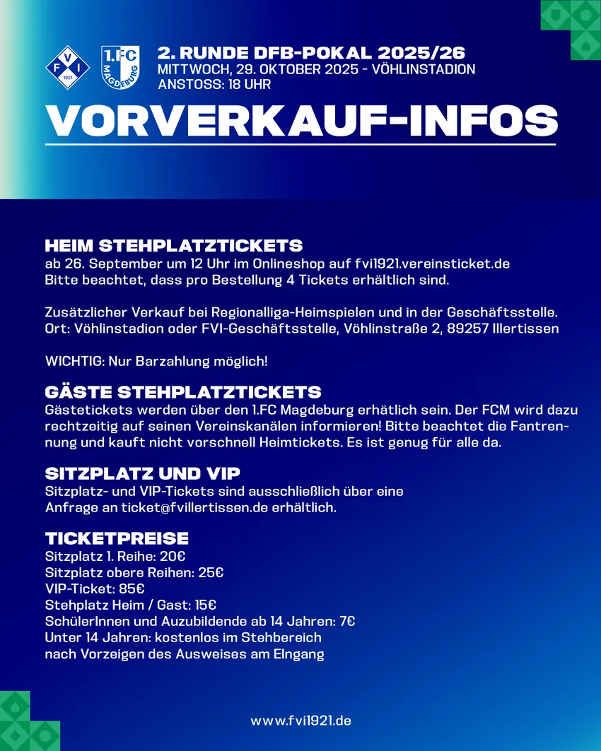 Gute Nachrichten zum Wochenstart! 🤩 Wir spielen gegen den 1.FC Magdeburg am Mittwoch 29.10. um 18 Uhr im Vöhlinstadion Illertissen 🏟️