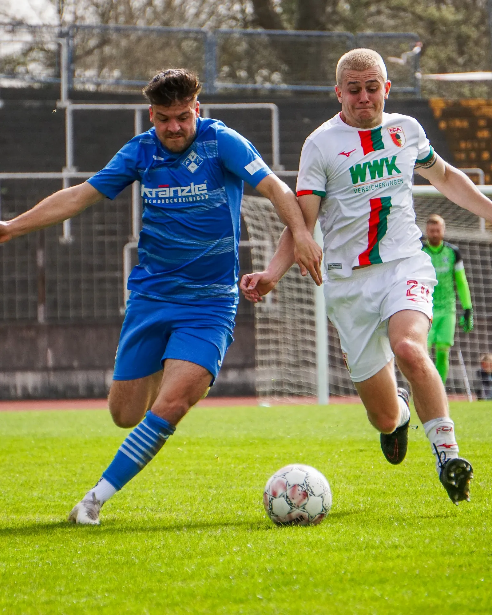 Beide Mannschaften waren von Beginn an sehr aktiv, der FVI insgesamt aber gefährlicher. So in der 26. Minute, als Denis Milic allein aufs Tor zulief, aber nur den Außenpfosten traf. Auch Daniel Hausmann schaffte es in der 31. Minute nicht, den Ausgleich zu erzielen, denn Torhüter Tobias Jäger rettete mit einer Glanzparade. Auch mit Beginn der zweiten Hälfte hatte der FVI durchaus mehr Offensivaktionen, doch den Abschlüssen fehlte die Präzision. Pech hatten sie auch noch, denn in der 68. Minute lenkte der Augsburger David Dreo einen Freistoß von Milos Cocic an die eigene Latte. Verständlich, dass die Illertisser mehr und mehr gezwungen waren, das Risiko zu erhöhen, was die Augsburger in der Schlussphase eiskalt ausnützten. In der 81. Minute rutschte nämlich ein Steilpass von Louis Stegmiller zu Mauro Hämmerle durch, der zum 0:2 einschob. Damit nicht genug, denn in der 84. Minute tanzte Aiman Dardari seinen Gegenspieler aus, traf aus wenigen Metern zum 0:3. „Auch wenn das Ergebnis etwas anderes aussagt, haben wir insgesamt eine gute Leistung gezeigt.