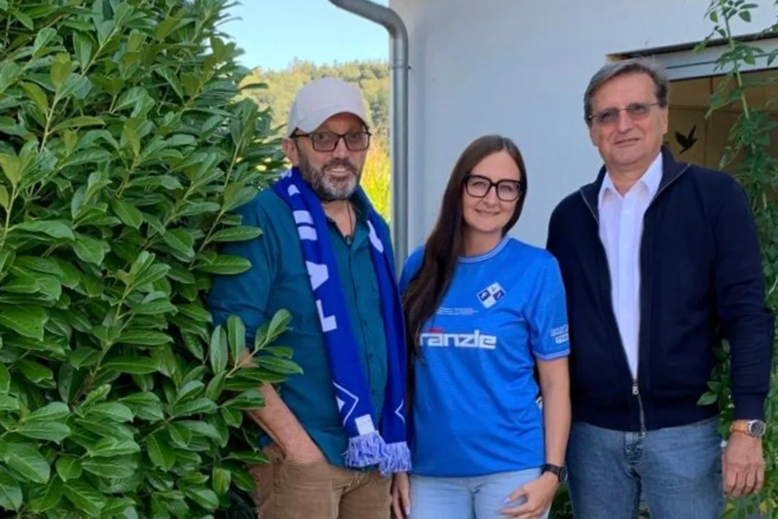 Im 1. Foto von links nach rechts: Geschäftsführer Christian Brugger, die Assistentin der Geschäftsleitung, Frau Isabell Gross und Sponsoringvorstand Anton Jenuwein.